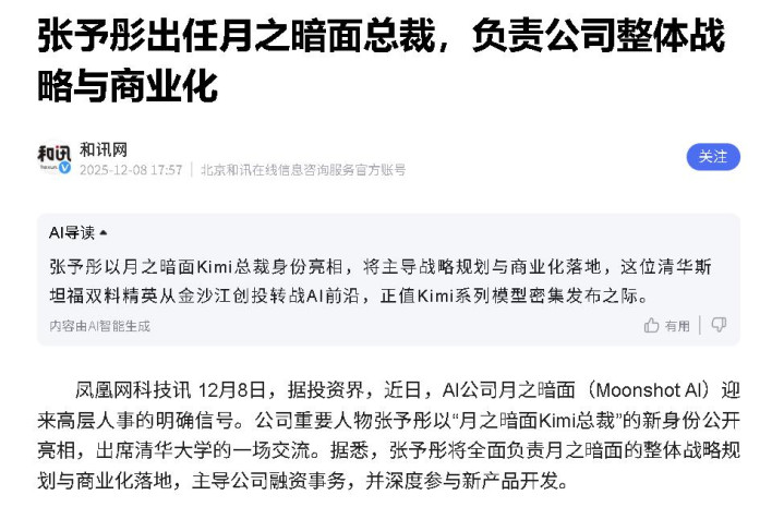 张予彤的任务非常明确:用最快速度解决赚钱难题,将过去的技术热度转化成资本真正认同的盈利曲线。月之暗面能否成为资本市场的宠儿,已经被这个新领导和当前团队逼到了生死边缘。